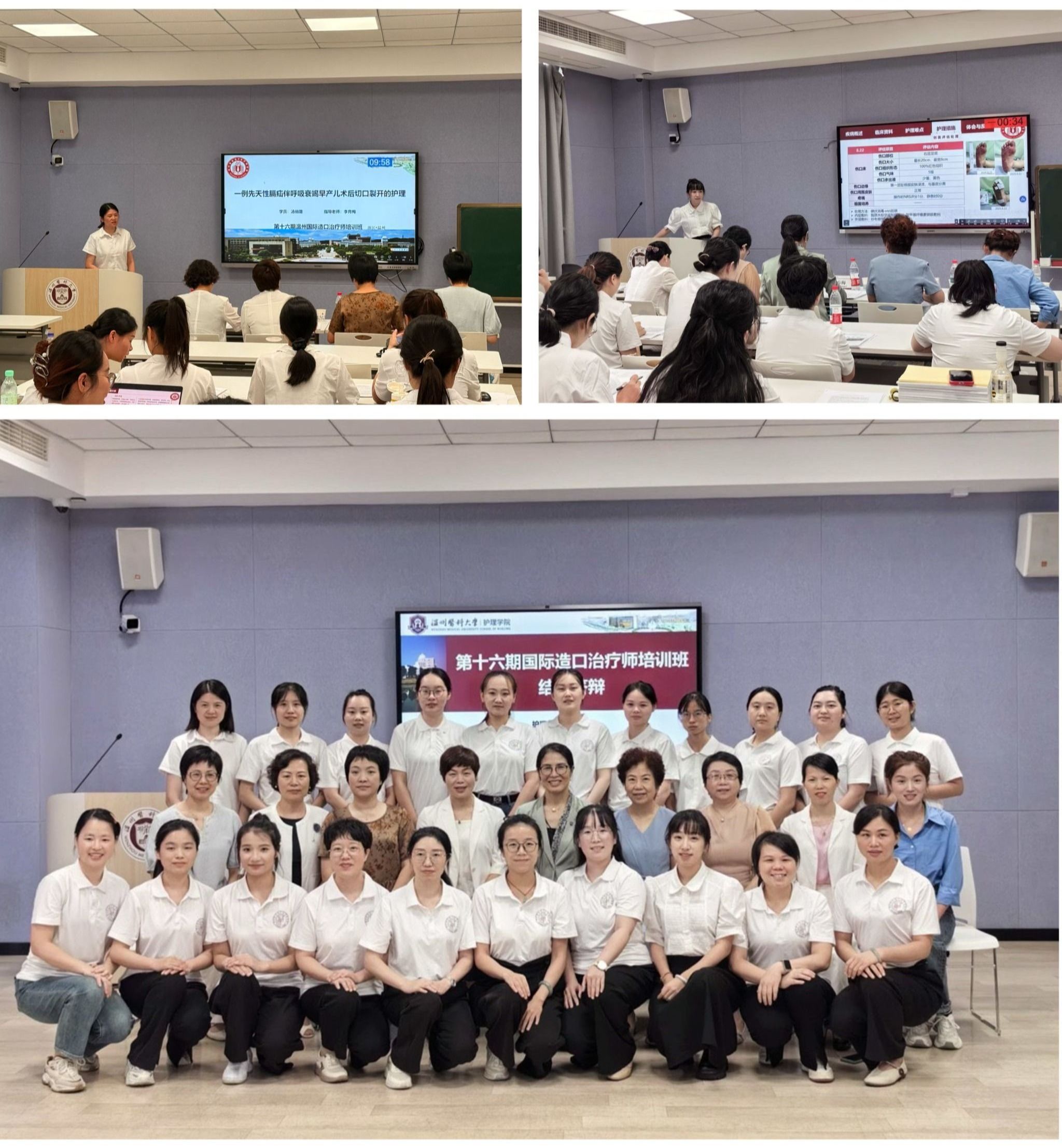 9 月 28 日下午,温州国际造口治疗师学校第十六期培训班结业典礼在成人导航 茶山校区7D203学术报告厅顺利举办。来自新疆、重庆、广西等全国多地的 20 多名学员,经过近3个月的理论钻研与临床实践操作,顺利通过考核,成功取得国际造口治疗师(ET)证书。