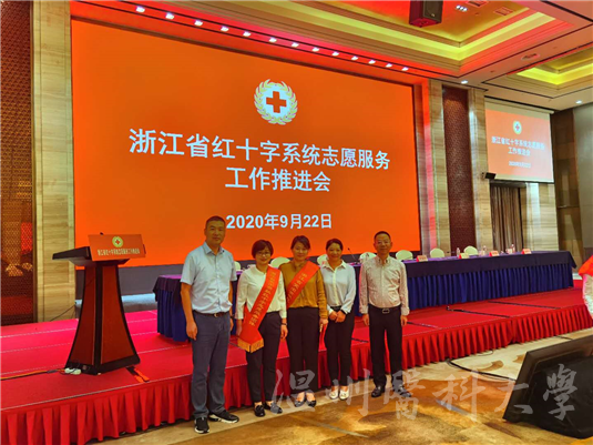 近年来,我校红十字会大力弘扬“人道、博爱、奉献”精神,充分发挥医学院校的专业优势,全方位推进“关爱生命”志愿服务项目。本次推进会上,我校附属第二医院红十字应急救护志愿服务队作为突出贡献红十字志愿服务团队代表、我校公共卫生与管理学院“红十字.生命相髓”志愿队指导老师丁娜妮代表突出贡献红十字志愿者参与了现场表彰环节。下一步,学校将以本次推进会为契机,在工作中进行积极探索,以更加开阔的视野和超前的思维,推动学校红十字志愿服务工作取得更大的成绩。